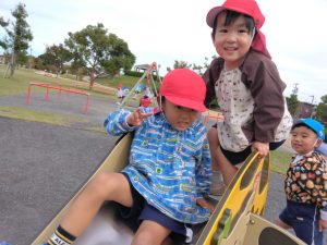 石津西公園では、風がありましたがみんなで仲良くお弁当を食べて嬉しかったね❤