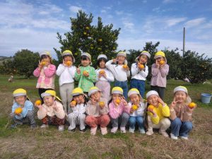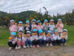 みかんの木の下に潜り込んで勢いよく収穫する子や、丁寧に2回切りをする子など、思い思いに収穫できました🎵